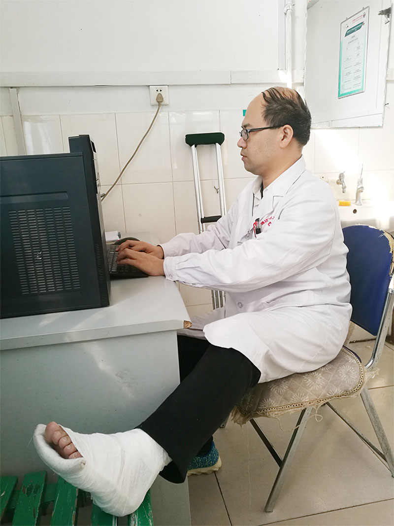 第二天,袁益光就拄著拐仗回到了崗位上 。雖然行動(dòng)不便,但他照常查房、門診。年三十的下午,劉大娘在家打掃衛(wèi)生不慎割傷了手,她急匆匆地來到我院急救醫(yī)救醫(yī)學(xué)科就診,正好趕上袁益光大夫值班。袁益光大夫?yàn)槔先丝p合了傷口,考慮到老人是自己來到醫(yī)院,沒有兒女的陪伴,袁醫(yī)生找到護(hù)士長,安排了一名護(hù)士陪同劉大娘辦理了相關(guān)手續(xù),為劉大娘開了消炎藥,并一再叮囑要及時(shí)換藥。劉大娘看到袁益光大夫在骨折的情況下仍然堅(jiān)守崗位,對(duì)袁大夫的責(zé)任心和敬業(yè)精神充滿了感動(dòng)。臨走的時(shí)候,不停的對(duì)袁大夫說,謝謝,謝謝……這正是體現(xiàn)了我們醫(yī)務(wù)工作者的敬業(yè)、無私奉獻(xiàn)和大愛精神。即使身為醫(yī)生,也免不了病痛的折磨,但身為醫(yī)生,他們肩負(fù)了更重的責(zé)任,為帶著病痛堅(jiān)持的醫(yī)生們點(diǎn)贊!