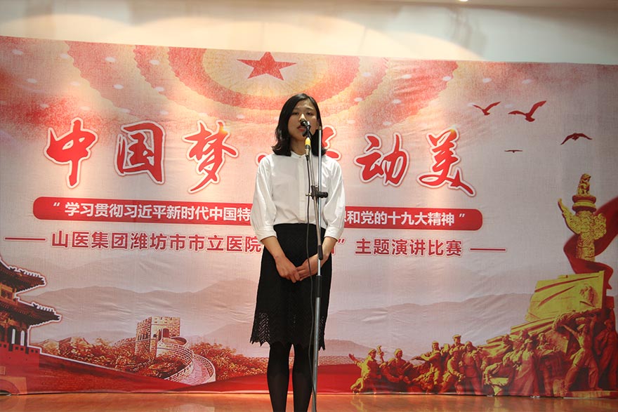 為進一步學習貫徹習近平新時代中國特色社會主義思想和黨的十九大精神,加強醫(yī)院文化建設(shè),搭建一個展示我院職工精神風貌的平臺,深刻領(lǐng)會中國夢的時代內(nèi)涵,激發(fā)廣大干部職工為夢想而奮斗的強大動力。5月4日下午,我院舉辦了“中國夢·勞動美—學習貫徹習近平新時代中國特色社會主義思想和黨的十九大精神”演講比賽。濰城區(qū)衛(wèi)計局黨建工作包靠領(lǐng)導王全勝,醫(yī)院黨委書記、院長鄭海妹,副院長鄒晨容、解魯明,峽山分院副院長慕海容以及全院職工代表共計200余人出席了此次活動。