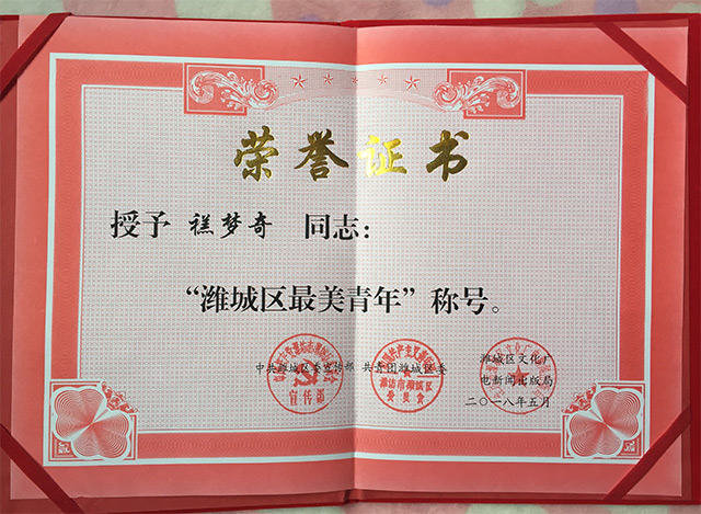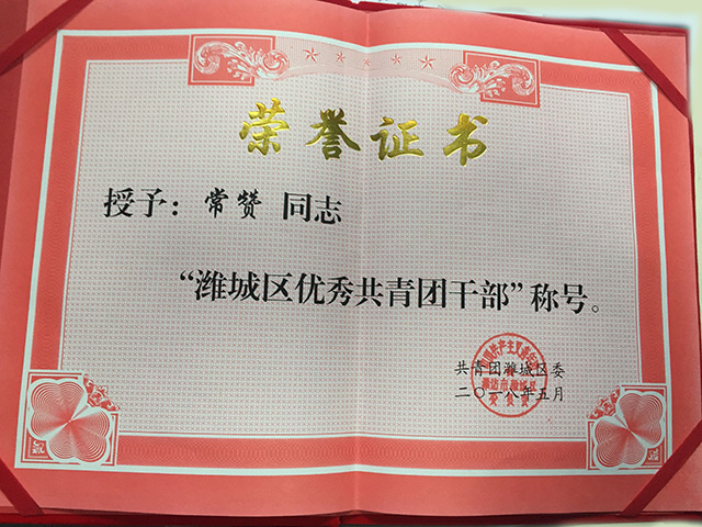 濰城區(qū)“優(yōu)秀共青團干部”稱號
