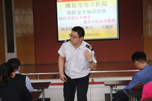 為進一步提高全院職工消防安全意識和應(yīng)急處理能力,構(gòu)筑消防安全“防火墻”,確保做到防患于未然,5月22日下午3點,我院在會議室開展2018年夏季消防知識培訓(xùn)。特邀政安防火消防教員王建朋為大家進行授課,院長解魯明及醫(yī)院各科室相關(guān)人員,共200余人參加了本次培訓(xùn),培訓(xùn)由安??撇瘫?/span>主任主持。