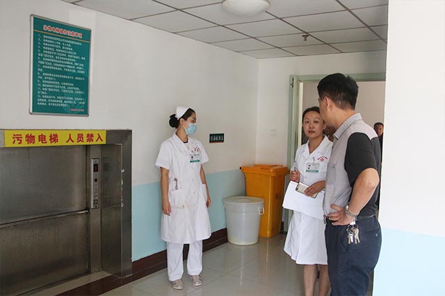 為進一步提高我院醫(yī)療廢物院內(nèi)意外泄露、失竊、擴散后防控方面的應急處置能力,確保醫(yī)療廢物院內(nèi)收集、運送過程的安全,2018年7月16日我院在腫瘤胸外科病區(qū)開展了醫(yī)療廢物應急處置預案演練,院感科制定預案并組織協(xié)調(diào)總務科、臨床科室、醫(yī)療廢物專職管理人員、醫(yī)療廢物收集人員、保潔管理負責人等二十余人參加本次演練。