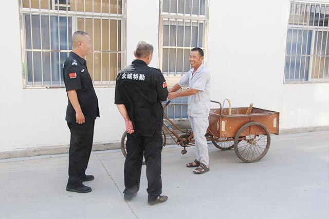 大門保安發(fā)現(xiàn)有一可疑人員騎三輪車攜帶一包裝帶出門,經(jīng)檢查發(fā)現(xiàn)車上裝有使用過的輸液管一包,判斷可能與失竊的醫(yī)療廢物有關(guān),立即通知保衛(wèi)科并通知醫(yī)療廢物專職轉(zhuǎn)運人員處理遺失的醫(yī)療廢物,匯報當?shù)嘏沙鏊窬⒓蹿s赴現(xiàn)場對該可疑人員盤問,經(jīng)調(diào)查得知,該可疑人員趁腫瘤胸外病區(qū)中午工作人員少,在病房忙碌時,潛入處置室竊取輸液管以謀取不正當利益。民警隨即將該可疑人員帶回派出所進一步審訊,演練完畢。