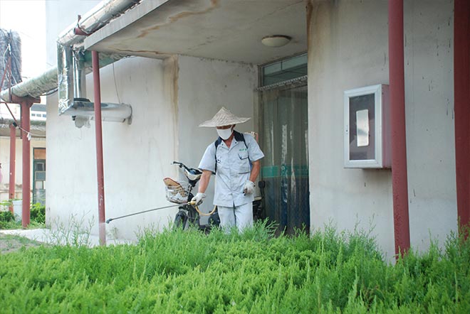 我院總務科工作人員對室內(nèi)外的綠化,溝渠等蚊蟲易滋生和易聚集的地方進行了藥物噴灑,在清理滋生地,殺滅成蚊等各個環(huán)節(jié)上都做了大量的工作,以切斷傳播途徑,嚴防疫情傳播。