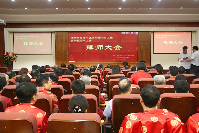 根據(jù)濰坊市衛(wèi)生和計劃生育委員會、市中醫(yī)藥管理局《關(guān)于開展濰坊市名老中醫(yī)師帶徒項目工程的通知》《關(guān)于組織召開“濰坊市名老中醫(yī)師帶徒項目工程”第一批師承工作拜師大會的預(yù)備通知》,8月4日上午,“濰坊市名老中醫(yī)帶徒項目工程”第一批師承工作拜師大會在濰坊市中醫(yī)院報告廳舉行,市衛(wèi)計委、市中醫(yī)藥管理局領(lǐng)導(dǎo),各縣市區(qū)、市屬各開發(fā)區(qū)衛(wèi)生計生局分管領(lǐng)導(dǎo)、中醫(yī)專職副局長、中醫(yī)藥管理科科長及全市22家醫(yī)療單位參加了此次大會,其中我院國醫(yī)堂主任醫(yī)師黃麗華、消化內(nèi)科主任王立榮,醫(yī)師宋立家、常贊、夏京、王鳳云分別作為指導(dǎo)老師與跟師人員參加