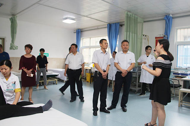 8月8日下午,昌樂(lè)縣黨委委員、衛(wèi)計(jì)局副局長(zhǎng)王琳,昌樂(lè)縣各級(jí)各類(lèi)醫(yī)療機(jī)構(gòu)、養(yǎng)老院一行參觀考察我院醫(yī)養(yǎng)結(jié)合工作,負(fù)責(zé)濰城區(qū)醫(yī)養(yǎng)結(jié)合工作的區(qū)衛(wèi)計(jì)局黨委委員、區(qū)計(jì)生協(xié)會(huì)會(huì)長(zhǎng)韓建偉和區(qū)計(jì)生管理科科長(zhǎng)馮永勝陪同,我院副院長(zhǎng)鄒晨容,院長(zhǎng)助理孫春梅、劉偉接待來(lái)訪并陪同考察。