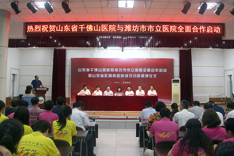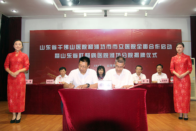 8月14日上午10:00,山東省千佛山醫(yī)院和濰坊市市立醫(yī)院全面合作啟動暨山東省肛腸病醫(yī)院濰坊分院揭牌儀式在濰坊市市立醫(yī)院會議室舉行。