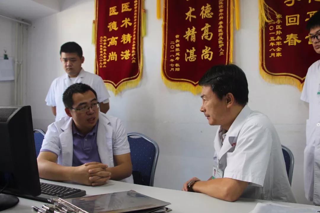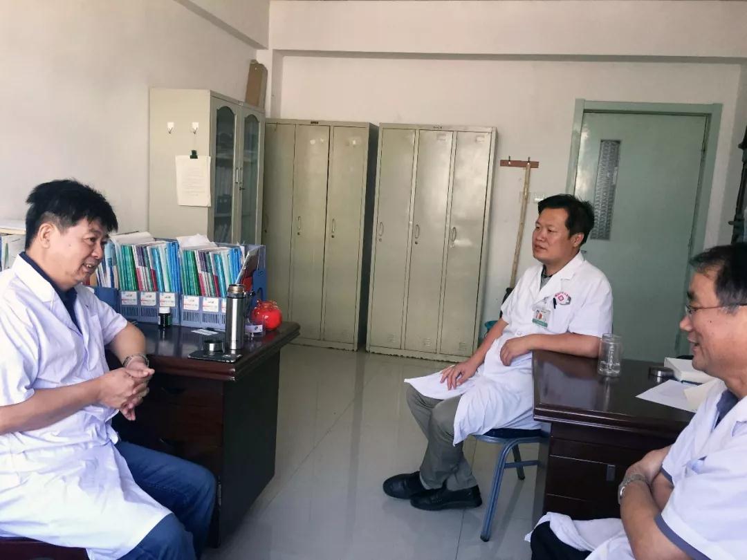 泌尿三科副主任王金(左一)與我院副院長(zhǎng)、泌尿外科主任解魯明交流中