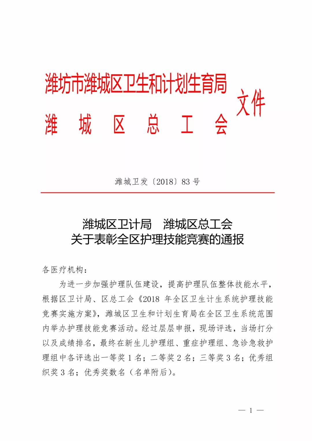 為進一步加強護理隊伍建設(shè),提高護理隊伍整體技能水平,根據(jù)區(qū)衛(wèi)計局、區(qū)總工會《2018年全區(qū)衛(wèi)生計生系統(tǒng)護理技能競賽實施方案》,近日,濰城區(qū)衛(wèi)生和計劃生育局在全區(qū)衛(wèi)生系統(tǒng)范圍內(nèi)舉辦護理技能競賽活動。經(jīng)過層層申報,現(xiàn)場評選,當場打分以及成績排名,最終在新生兒護理組、重癥護理組、急診急救護理三個組中評選出各個獎項。其中,我院派出的護師隊伍,取得了優(yōu)秀成績。