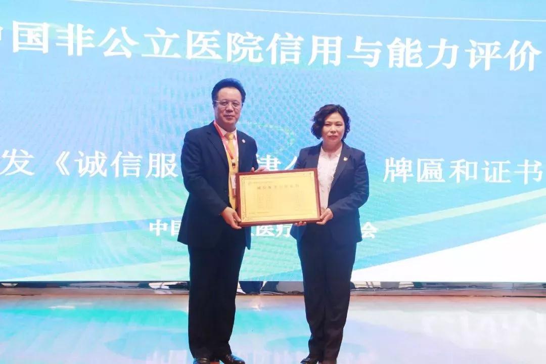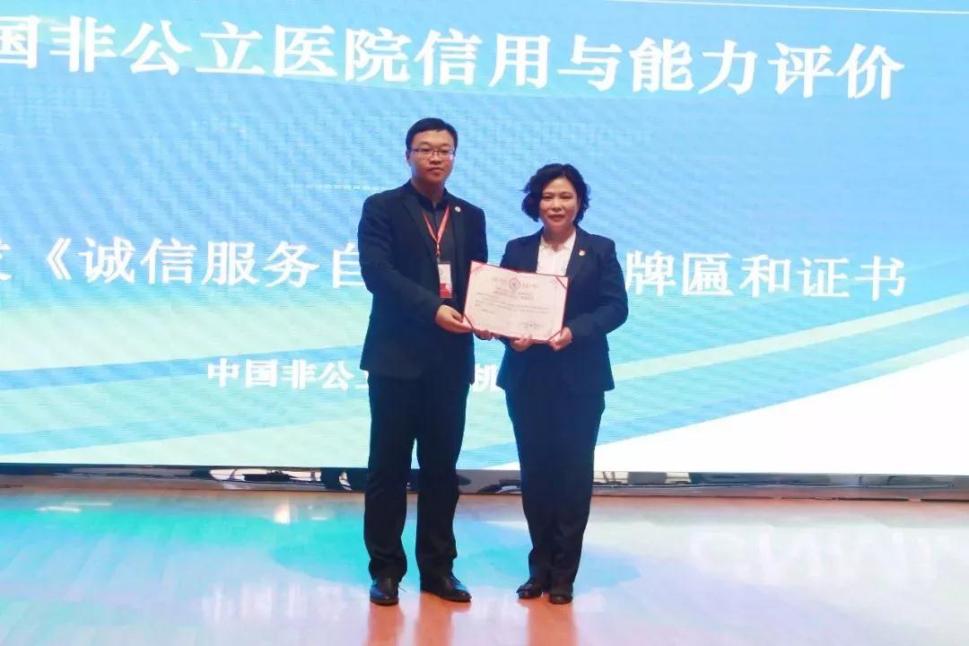 中國(guó)非公立醫(yī)療機(jī)構(gòu)協(xié)會(huì)評(píng)價(jià)專(zhuān)家組大組長(zhǎng)楊有業(yè)向醫(yī)院頒發(fā)中國(guó)非公立醫(yī)療機(jī)構(gòu)協(xié)會(huì)“誠(chéng)信服務(wù)自律公約”牌匾