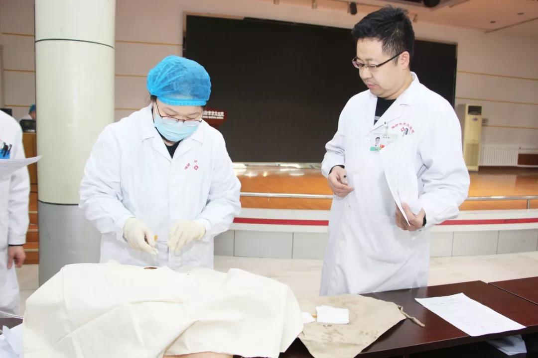 理論考試結(jié)束后進行了胸穿、腹穿、腰穿操作考核,分別由腫瘤胸外科主任徐加錕、普外科主治醫(yī)師劉春、內(nèi)分泌代謝科副主任醫(yī)師李愛華擔任監(jiān)考員,監(jiān)考員嚴格按照操作規(guī)范進行現(xiàn)場打分,考核客觀、公正、公平??荚囃瓿珊罂己巳藛T給予了考生耐心細致的指導,將“傳”“幫”“帶”落實到實處。