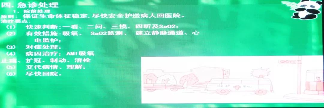 下午3時(shí),張愛元主任以“急性胸痛鑒別”為主題進(jìn)行培訓(xùn),醫(yī)院200余名醫(yī)務(wù)人員參加培訓(xùn),張愛元主任從胸痛的分類、發(fā)病年齡、疼痛部位、疼痛性質(zhì)、疼痛時(shí)間及影響疼痛的因素、疼痛的伴隨癥狀、其他有關(guān)病史七個(gè)模塊對(duì)急性胸痛進(jìn)行講解,培訓(xùn)過(guò)程中他結(jié)合具體案例對(duì)急性胸痛的急診處理進(jìn)行重點(diǎn)闡述,并以流程圖的形式對(duì)急性胸痛的診斷與處理進(jìn)行了總結(jié),培訓(xùn)內(nèi)容深刻豐富,參與培訓(xùn)人員紛紛表示受益匪淺。