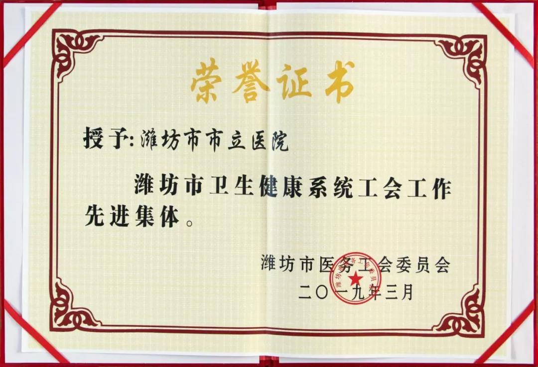 喜訊|致敬醫(yī)者匠心 凝聚奮進力量—我院榮獲“濰坊市衛(wèi)生健康系統(tǒng)工會工作先進集體”殊榮