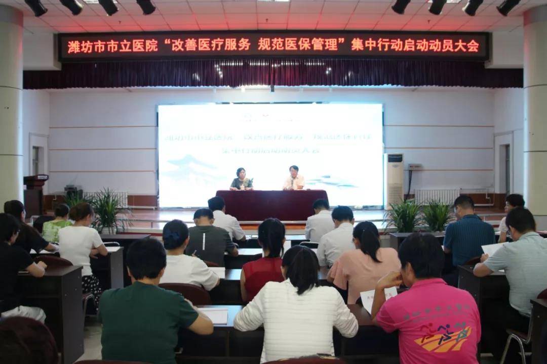 8月26日下午,濰坊市市立醫(yī)院召開“改善醫(yī)療服務(wù) 規(guī)范醫(yī)保管理”集中行動(dòng)啟動(dòng)動(dòng)員大會(huì)。山醫(yī)集團(tuán)副主席、濰坊市市立醫(yī)院院長(zhǎng)靳清漢,山醫(yī)集團(tuán)副主席、濰坊市市立醫(yī)院副院長(zhǎng)李德明、楊瑞,院黨委書記、董事長(zhǎng)鄭海妹及全院中層干部、科室代表共200余人參加了本次會(huì)議。