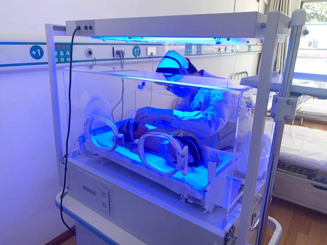 “新市立”接受藍光照射治療中