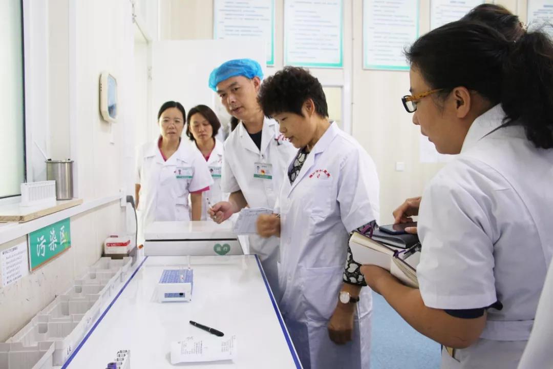 座談會結(jié)束后,牟善芳教授在院領(lǐng)導(dǎo)及相關(guān)部門負(fù)責(zé)人的陪同下,到普外泌尿科病區(qū)、呼吸內(nèi)科病區(qū)、檢驗科、門診診室、總務(wù)科等進行了現(xiàn)場指導(dǎo),提出可行性建議。針對醫(yī)院職工提出的問題,牟善芳教授進行了認(rèn)真細(xì)致的解答。