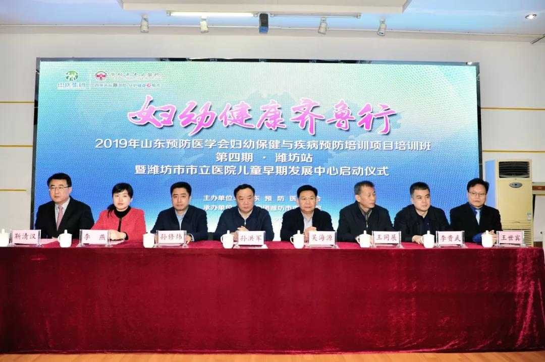 12月20日上午八時,“婦幼健康齊魯行-2019年山東預(yù)防醫(yī)學(xué)會婦幼保健與疾病預(yù)防培訓(xùn)項目"第四期培訓(xùn)班(濰坊站)暨濰坊市市立醫(yī)院兒童早期發(fā)展中心啟動儀式在濰坊市市立醫(yī)院三樓會議室隆重舉行,中國醫(yī)師協(xié)會副會長、山東省醫(yī)師協(xié)會會長孫洪軍教授,山東預(yù)防醫(yī)學(xué)會王同展秘書長,濰坊市衛(wèi)生健康委黨組書記、主任、市中醫(yī)藥管理局局長吳海源同志,濰城區(qū)委副書記、區(qū)長孫修煒同志,濰城區(qū)衛(wèi)生健康局黨組書記、局長、區(qū)中醫(yī)藥管理局局長李貴武同志,濰城區(qū)衛(wèi)生健康局副局長隋衛(wèi)東同志,山東第一醫(yī)科大學(xué)第一附屬醫(yī)院兒保中心主任、濰坊市市立醫(yī)院兒童早期發(fā)展中心首席顧問、學(xué)術(shù)主任李燕博士,山醫(yī)集團(tuán)董事長王世賓,山醫(yī)集團(tuán)副主席、濰坊市市立醫(yī)院院長靳清漢,山醫(yī)集團(tuán)副主席、濰坊市市立醫(yī)院副院長李德明、楊瑞,濰坊市市立醫(yī)院副院長兼山醫(yī)集團(tuán)第三醫(yī)院、濰坊經(jīng)濟(jì)開發(fā)區(qū)人民醫(yī)院總院長劉祿明,濰坊市各市縣級醫(yī)療機(jī)構(gòu)、婦幼保健機(jī)構(gòu)兒科、兒童保健科主任及專業(yè)人員,社區(qū)衛(wèi)生服務(wù)中心、鄉(xiāng)鎮(zhèn)衛(wèi)生院等醫(yī)療保健機(jī)構(gòu)從事兒童保健、兒科等專業(yè)技術(shù)人員260余人參加了此次會議,會議由李德明副院長主持。