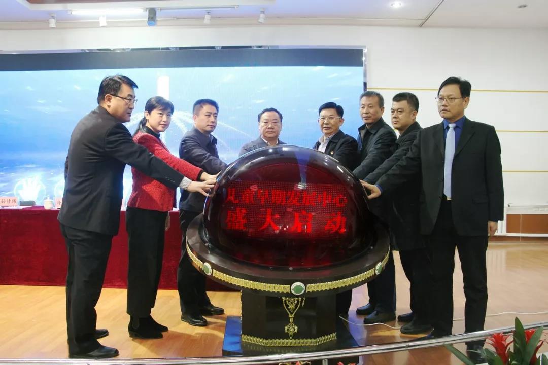參會領(lǐng)導(dǎo)共同按下濰坊市市立醫(yī)院兒童早期發(fā)展中心啟動球