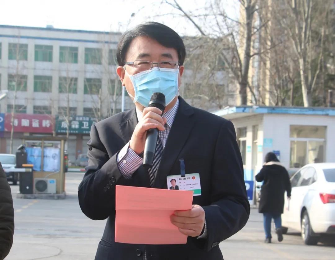 靳清漢院長首先對濰城區(qū)衛(wèi)健局李貴武局長、隋衛(wèi)東副局長楊蘭花科長給予醫(yī)院的關(guān)心與支持表示了衷心的感謝,向援鄂醫(yī)療隊隊員的敢于擔當?shù)木癖磉_了崇高的敬意。他講到:自新冠肺炎疫情發(fā)生以來,醫(yī)院積極響應援鄂醫(yī)療的倡議,及時組織報名活動,全院醫(yī)務人員踴躍報名,最終遴選張宏偉同志、程嘉明同志、樊廣瑞同志代表醫(yī)院到湖北參戰(zhàn),他們這一行為體現(xiàn)了救死扶傷、敬佑生命、無私奉獻、大愛無疆的英雄主義和仁愛精神,值得學習與贊揚。三位同志作為醫(yī)院的代表,是濰坊的形象,也是山醫(yī)集團的驕傲,希望他們到達工作崗位后能夠發(fā)揮醫(yī)院的優(yōu)良傳統(tǒng)和作風,服從疫情指揮部和定點醫(yī)院的安排,弘揚團隊合作意識,積極克服困難,以病人為中心,視病人為親人,在保護好自身安全的同時盡心盡力為疫區(qū)同胞提供有溫度的濰坊人文服務。