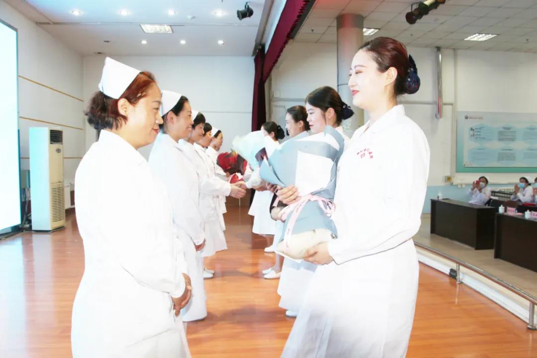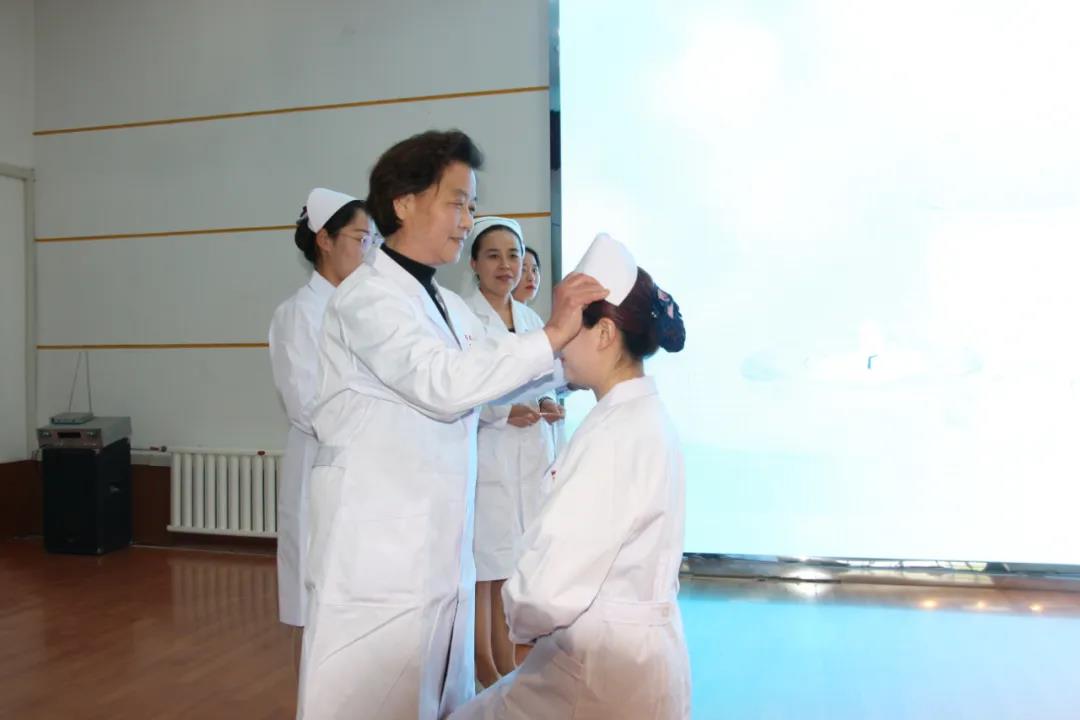 米玉珍副院長為青年護(hù)士代表進(jìn)行授帽,并對年輕護(hù)理人員提出了期望:希望年輕護(hù)士戴上圣潔的燕尾帽后,接過南丁格爾手中的的蠟燭,能夠不忘初心,牢記守護(hù)健康的使命,在救死扶傷的崗位上拼搏奮斗,讓青春在人民群眾最需要的地方綻放絢麗之花。