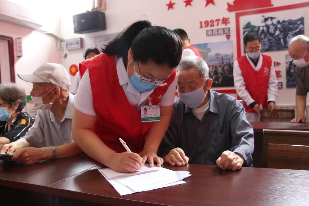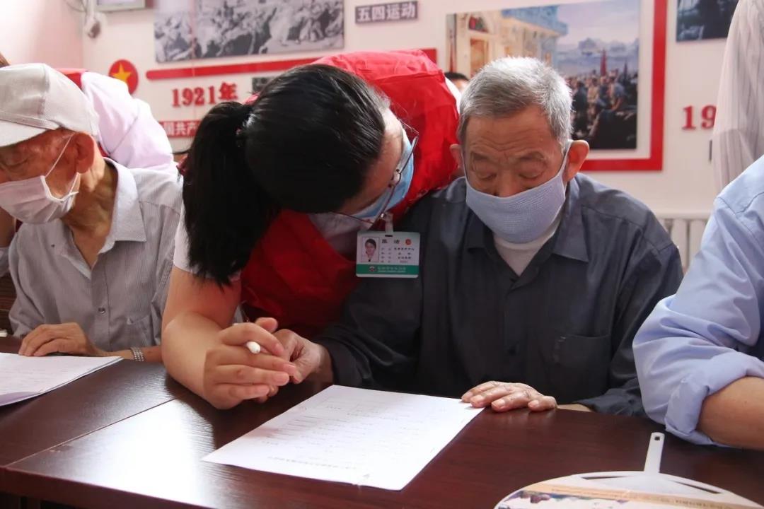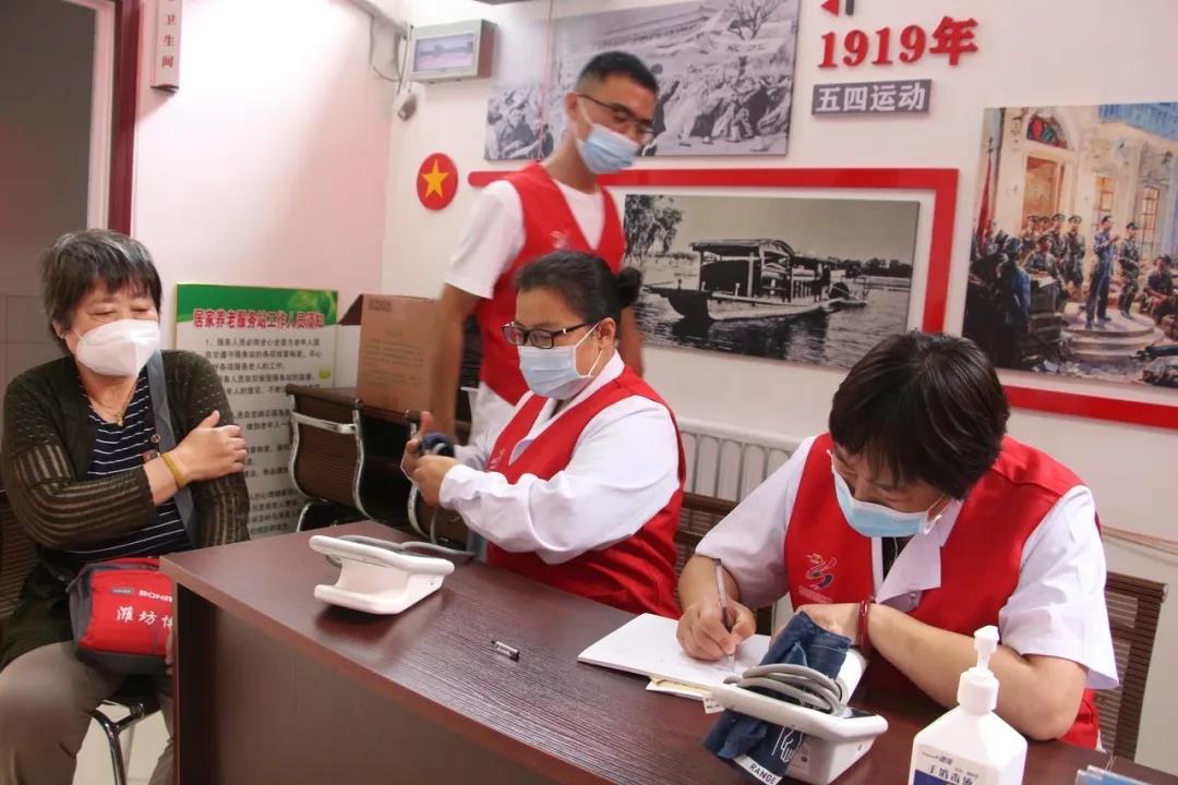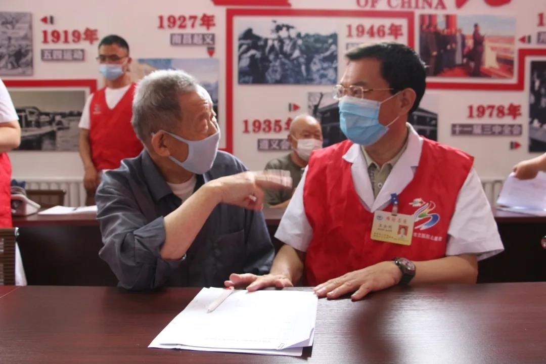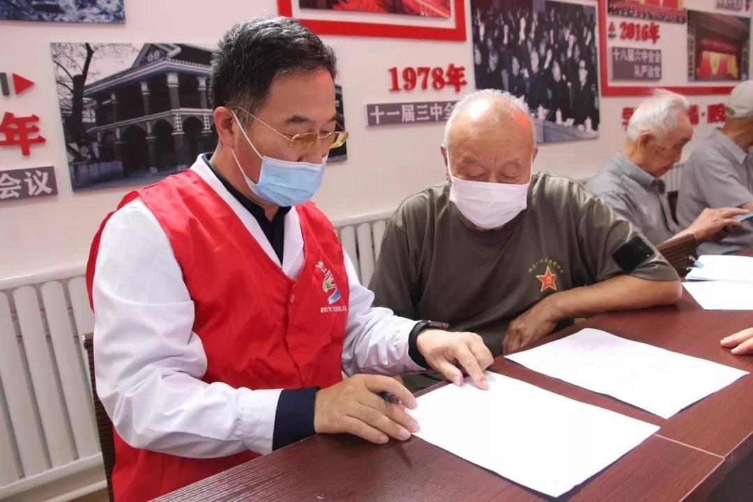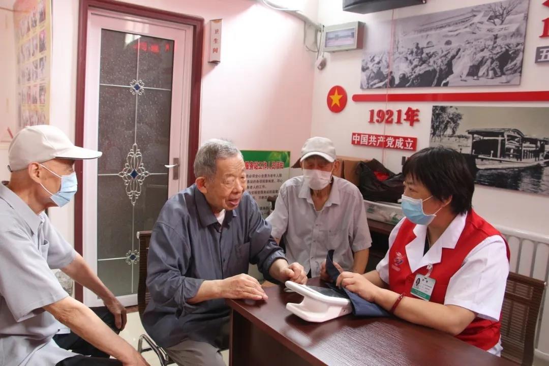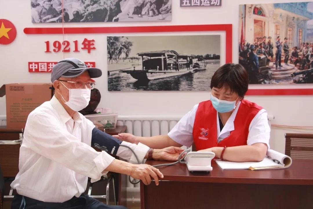 醫(yī)院志愿者為軍休干部測(cè)量血壓并給予健康指導(dǎo)。