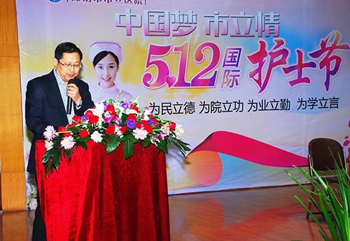 黨委副書記、副院長李會全首先代表醫(yī)院黨政班子致賀辭,向全院日夜奮戰(zhàn)在護理工作崗位上的各位護士姐妹們送上節(jié)日的問候和祝福,希望全體護理人員,繼續(xù)發(fā)揚南丁格爾精神,利用自己精湛的業(yè)務技術,良好的溝通技巧,優(yōu)良的服務態(tài)度,以昂揚向上的工作作風,腳踏實地,認真工作,努力使我院的護理工作再上新臺階。以純潔高尚的醫(yī)德風范服務患者,努力當好人民群眾信賴的健康衛(wèi)士。