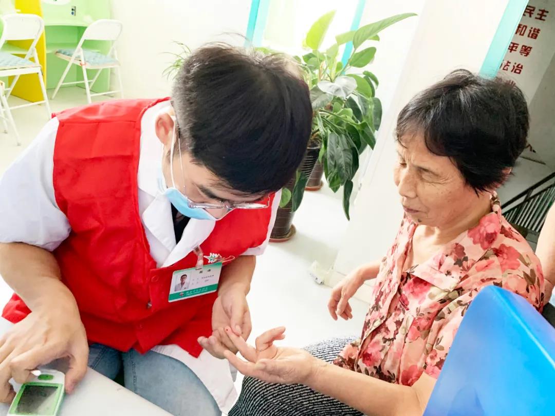 期間,李主任為居民耐心解答問(wèn)題,醫(yī)務(wù)人員給現(xiàn)場(chǎng)的居民免費(fèi)測(cè)量血糖。