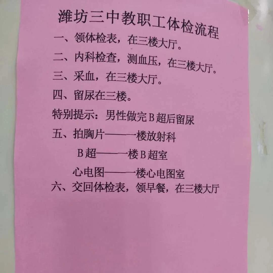 為了讓教師們及時(shí)了解自己身體狀況,提高健康保護(hù)意識(shí),濰坊第三中學(xué)組織全校教職工400余人定于10月7日、8日、11日在我院進(jìn)行全面的身體健康檢查。截至目前,已完成313人的體檢工作。