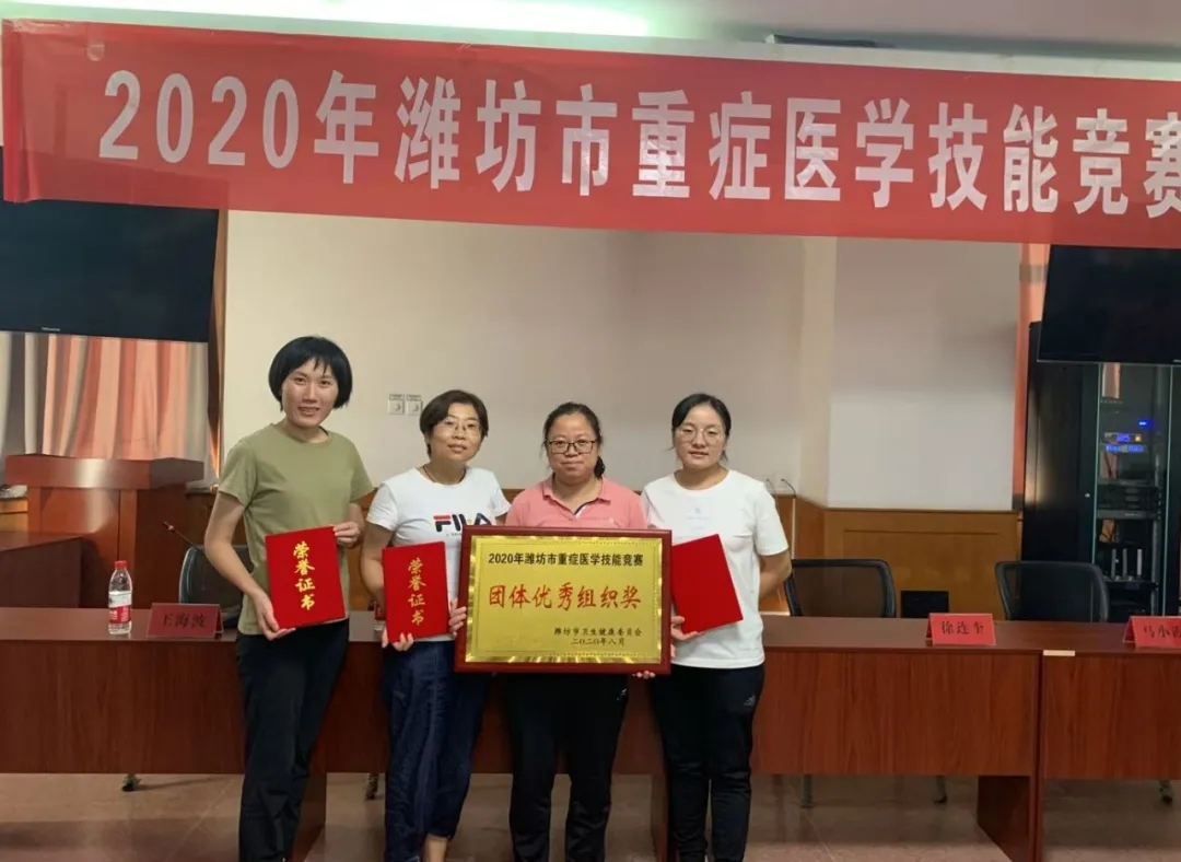 根據(jù)省衛(wèi)健委、省總工會《2020年全省重癥醫(yī)學(xué)技能競賽實施方案》,及濰坊市醫(yī)務(wù)工會職工職業(yè)技能大賽年度計劃,8月25日,濰坊市衛(wèi)生健康委、濰坊市總工會在濰坊市人民醫(yī)院培訓(xùn)中心舉行2020年全市重癥醫(yī)學(xué)技能競賽。來自全市18家醫(yī)療機(jī)構(gòu)共計90名重癥醫(yī)學(xué)專業(yè)醫(yī)護(hù)人員參加競賽,邀請全省重癥醫(yī)學(xué)專家擔(dān)任評委。經(jīng)理論考試和操作技能考核,由我院組成的濰城區(qū)代表隊榮獲團(tuán)體優(yōu)秀組織獎,重癥監(jiān)護(hù)室李成鳳榮獲個人賽一等獎,重癥監(jiān)護(hù)室李明巖榮獲個人賽二等獎,重癥監(jiān)護(hù)室韓玉波榮獲個人賽三等獎,重癥監(jiān)護(hù)室張娟、李麗榮獲個人賽優(yōu)秀獎。