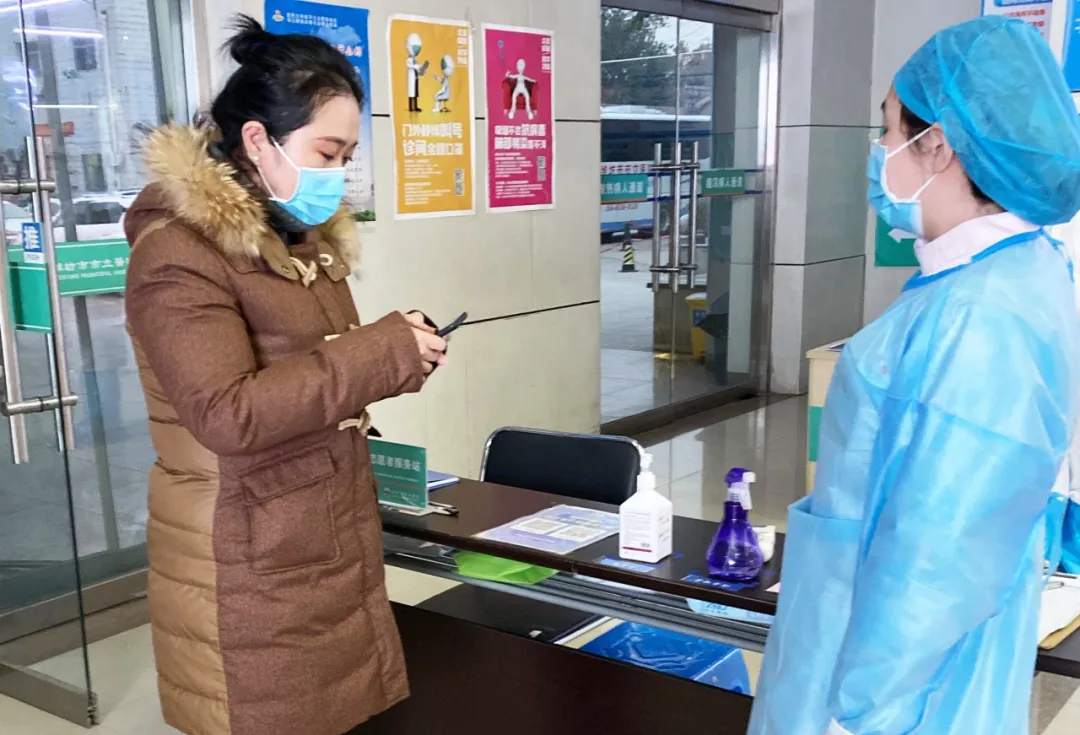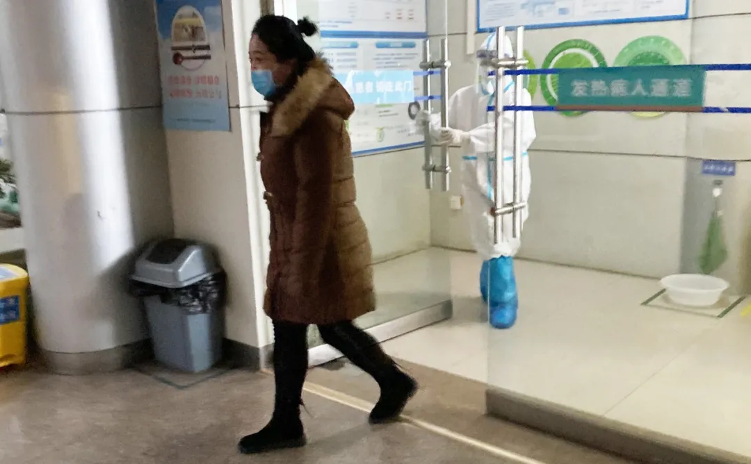 導(dǎo)診人員著二級(jí)防護(hù)來(lái)接患者前往發(fā)熱門(mén)診導(dǎo)診人員著二級(jí)防護(hù)帶領(lǐng)患者經(jīng)發(fā)熱患者專(zhuān)用通道