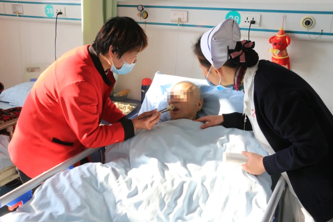 醫(yī)務(wù)人員、護(hù)理員為老人端上熱氣騰騰的餃子,一些不便自行入食的老人,護(hù)理員還貼心地將餃子喂到老人嘴邊。老人們臉上洋溢著幸福的笑容,醫(yī)養(yǎng)結(jié)合區(qū)內(nèi)充滿了溫馨的氣氛,驅(qū)趕了這冬日的寒冷。