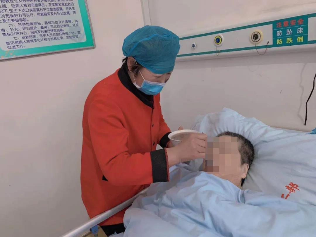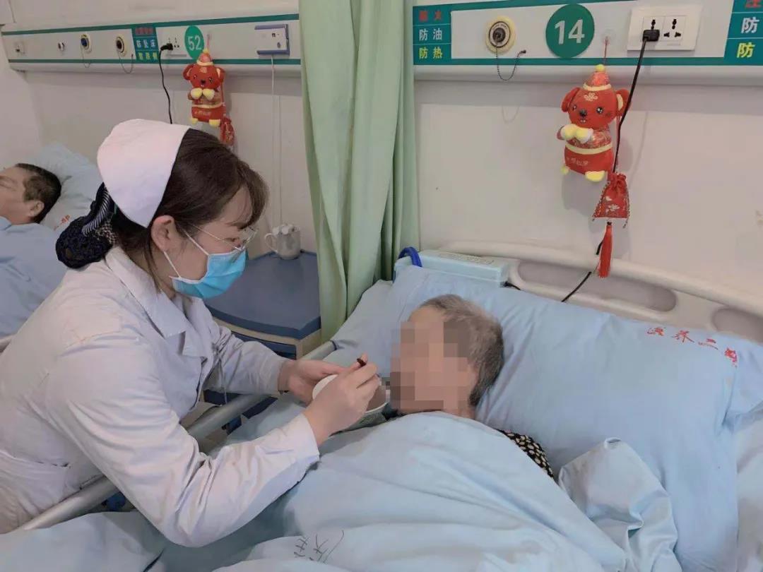 醫(yī)護人員喂老人喝粥