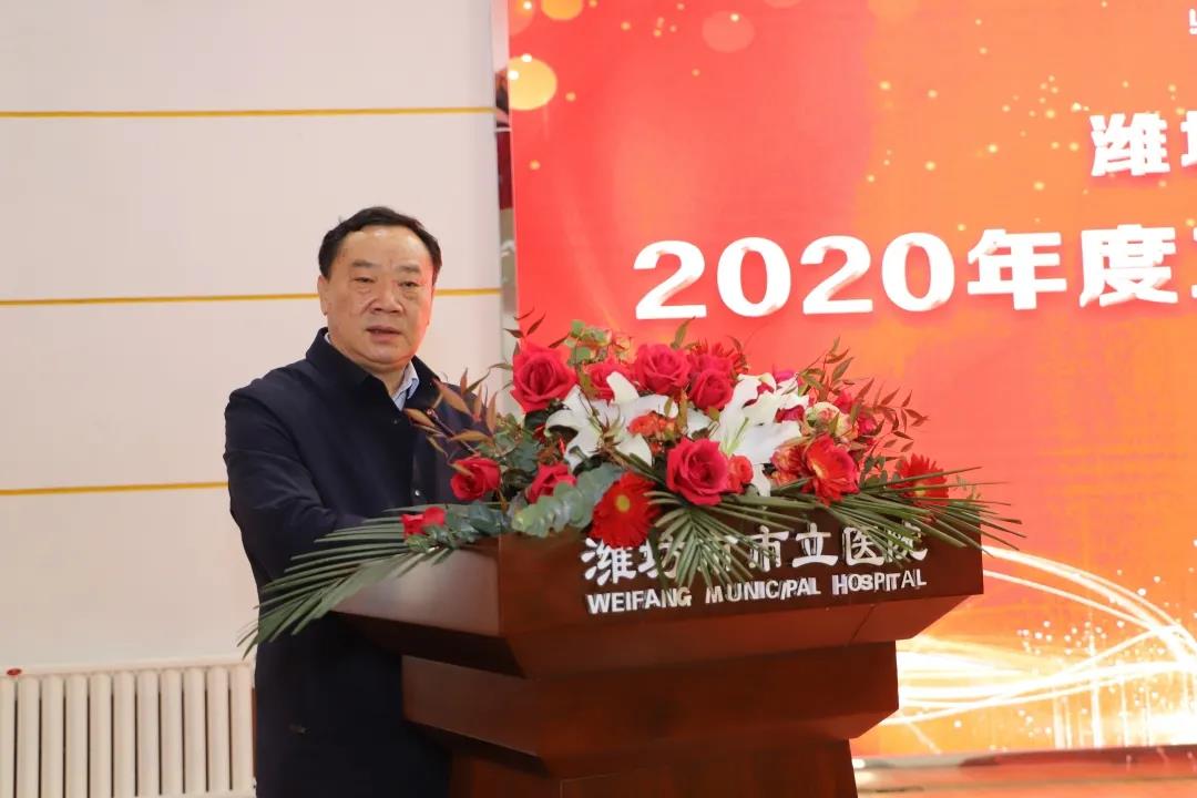 2021年1月29日下午,濰坊市市立醫(yī)院2020年度工作總結(jié)暨表彰大會(huì)在會(huì)議室隆重召開(kāi)。中國(guó)醫(yī)師協(xié)會(huì)副會(huì)長(zhǎng)、山東省醫(yī)師協(xié)會(huì)會(huì)長(zhǎng)孫洪軍應(yīng)邀出席大會(huì)。濰坊市市立醫(yī)院院長(zhǎng)季洪勝等院領(lǐng)導(dǎo)、中層干部、獲獎(jiǎng)人員及科室代表共計(jì)200余人參加了本次大會(huì),大會(huì)由院長(zhǎng)助理韓佳君主持。