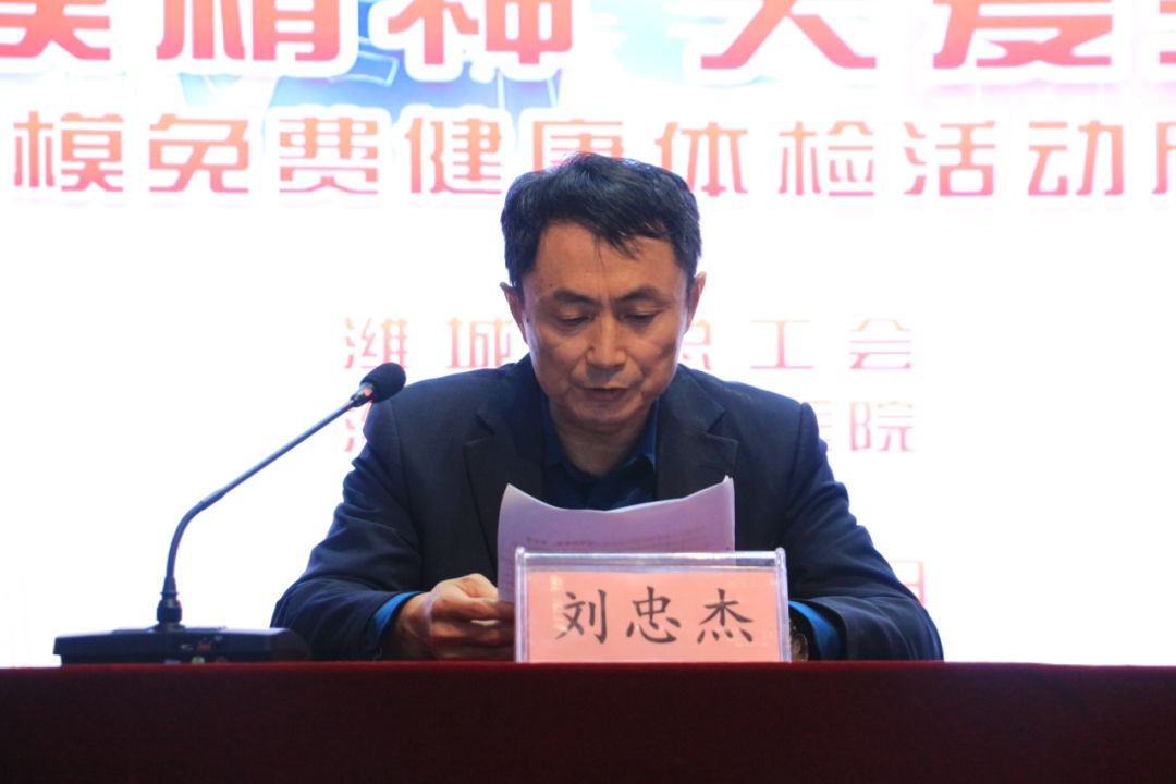 濰城區(qū)總工會經(jīng)審委主任劉忠杰最后發(fā)言。他提出,本次濰城區(qū)總工會倡導(dǎo)的濰城勞模免費健康體檢活動是總工會高度重視服務(wù)勞模工作,關(guān)心關(guān)愛勞模朋友的重要舉措。同時,他借“五一”國際勞動節(jié)到來之際,代表濰城區(qū)總工會向勞模們致以節(jié)日的問候。向社會各界對各級工會工作的重視和支持表示了衷心感謝。
