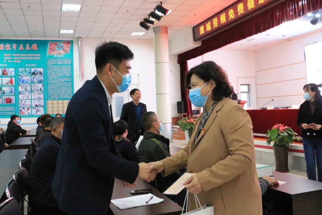 啟動儀式的最后,領(lǐng)導(dǎo)們親自為勞模代表發(fā)放了濰坊市市立醫(yī)院免費體檢卡和紀念品,并同他們合影留念。