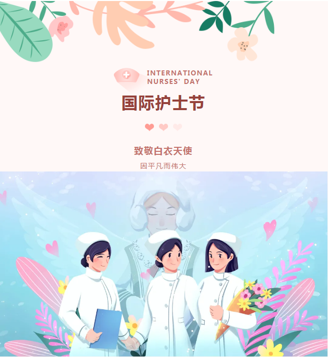 在這陽光明媚、鮮花盛開的季節(jié),我們迎來了一年一度的5·12國際護(hù)士節(jié)。醫(yī)院黨委和領(lǐng)導(dǎo)班子向日夜工作在護(hù)理崗位上默默無聞、無私奉獻(xiàn)、辛勤勞動(dòng)的“白衣天使”們,致以節(jié)日的問候!