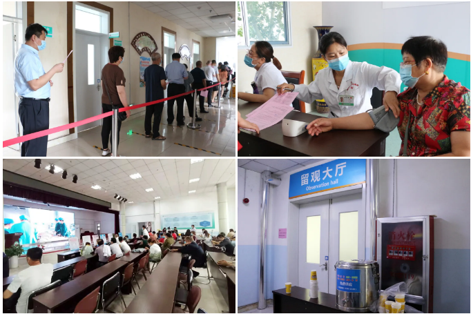 為更好地滿(mǎn)足大規(guī)模人群的接種需求,醫(yī)院將門(mén)診樓三樓的五間房間改造為新冠病毒疫苗臨時(shí)接種點(diǎn),設(shè)立預(yù)檢分診區(qū)、登記室、接種室、異常反應(yīng)處置間,地面貼有醒目的安全距離一米線(xiàn),走廊拉起隔離帶。“留觀”這一疫苗接種流程中的重要環(huán)節(jié),醫(yī)院也十分重視。專(zhuān)門(mén)將配備空調(diào)、大屏幕的會(huì)議室作為留觀大廳,臨時(shí)設(shè)置飲水區(qū),為接種者營(yíng)造了更為寬敞、明亮、舒適的疫苗接種環(huán)境。