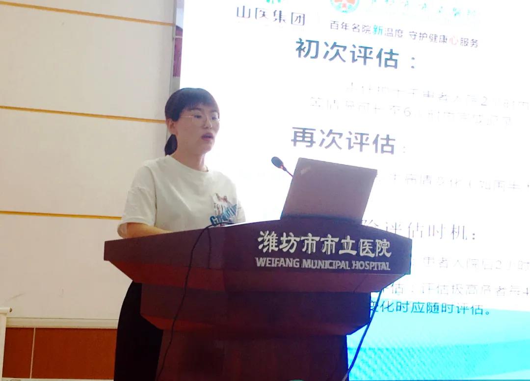 為強化護(hù)士的風(fēng)險評估和安全管理意識,切實落實護(hù)理質(zhì)量標(biāo)準(zhǔn),嚴(yán)格規(guī)范護(hù)理行為,6月24日下午,護(hù)理部舉辦了《住院患者護(hù)理風(fēng)險評估》培訓(xùn)會,山醫(yī)集團(tuán)濰坊市市立醫(yī)院、山醫(yī)集團(tuán)第三醫(yī)院、濰坊經(jīng)濟(jì)開發(fā)區(qū)人民醫(yī)院共計100余名護(hù)理人員參加了本次培訓(xùn)。