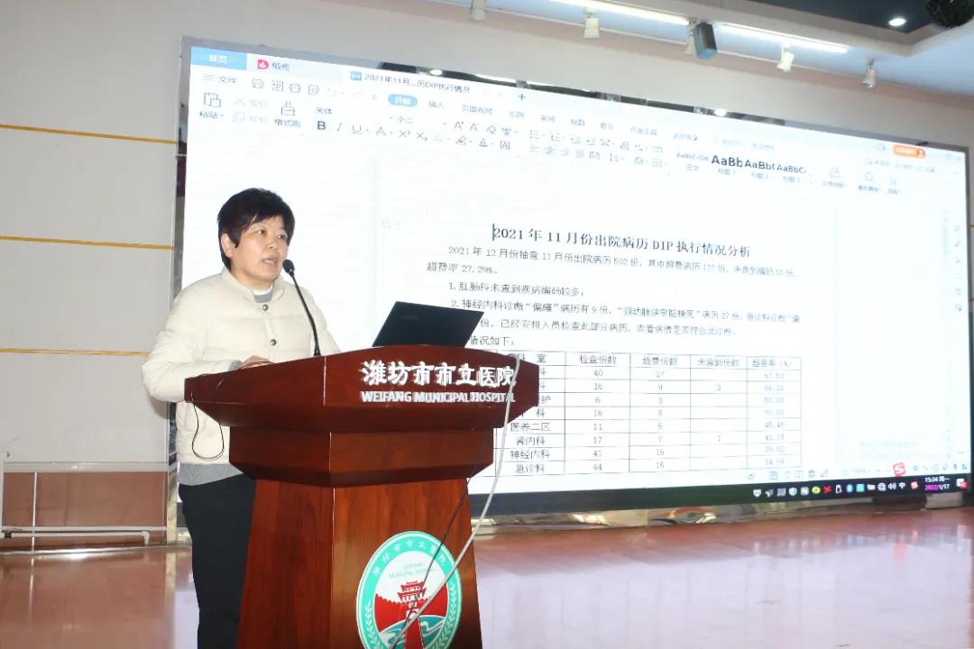 院長助理張言分析了此次集團檢查醫(yī)療方面存在的問題,重點在核心制度的掌握執(zhí)行和病歷書寫規(guī)范方面,列舉了部分科室核心制度落實存在的問題,強調(diào)各科室要以此次集團巡檢為契機,在十八項核心制度上狠下功夫。同時,她對2021年11月份出院病歷DIP執(zhí)行情況進(jìn)行了通報,并提出了整改方案。