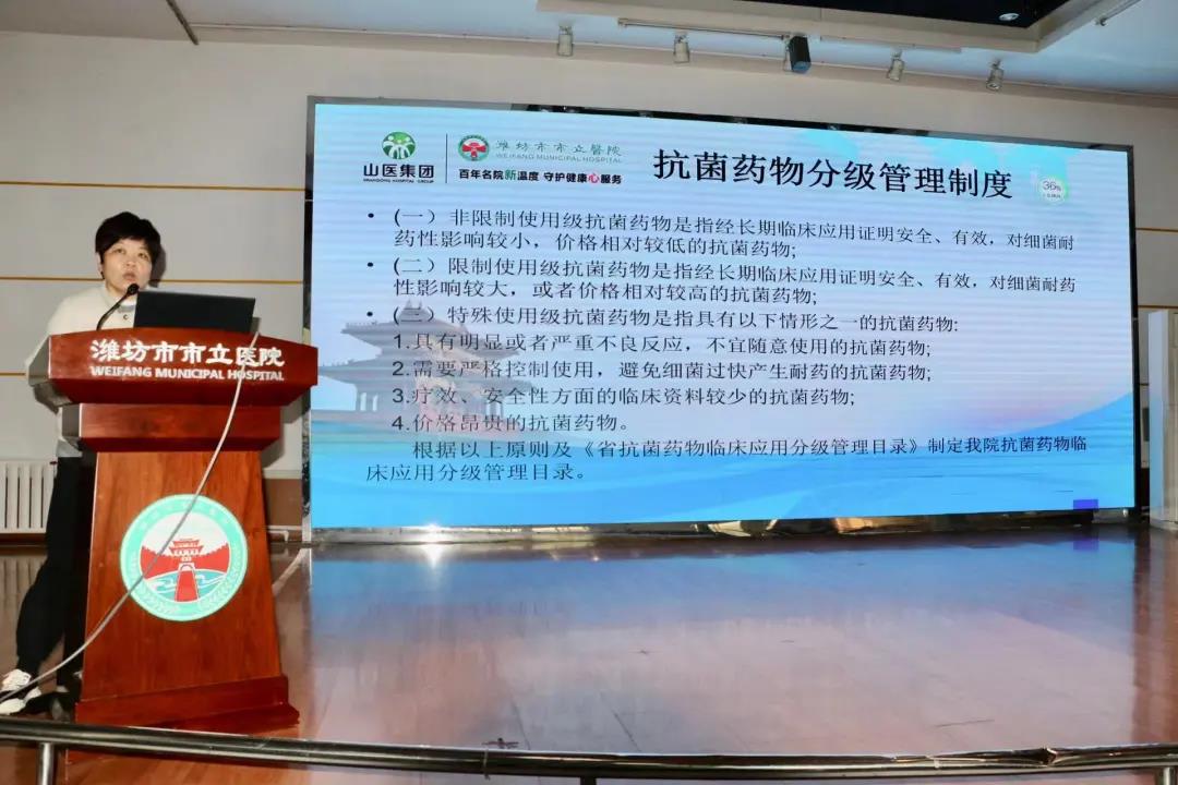 院長助理張言就抗菌藥物的分級授權(quán)管理、合理應用等方面進行了詳細講解,她指出,大家要高度重視抗菌藥物臨床的合理使用,不斷優(yōu)化抗菌藥物應用結(jié)構(gòu),提高醫(yī)療服務水平。