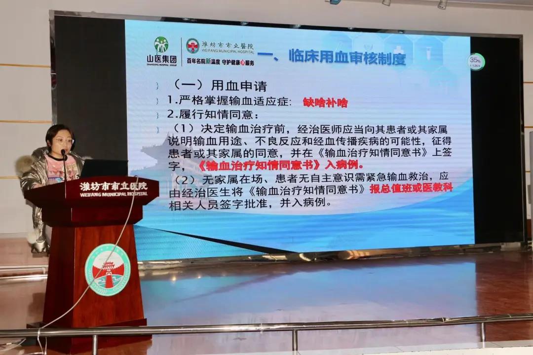 檢驗科從曰鑫就臨床用血審核制度(全程管理)、大量輸血流程、輸血應急預案等方面進行了講解,她表示,大家一定要規(guī)范臨床輸血,提高輸血安全意識,確??茖W、安全、合理、有效輸血。