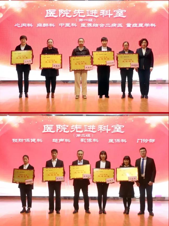 副院長解魯明宣讀《關(guān)于表彰二〇二一年度先進科室及先進工作者的決定》。孫洪軍會長及院領(lǐng)導(dǎo)向受表彰的科室和個人現(xiàn)場頒發(fā)了獎牌和榮譽證書,并合影留念。