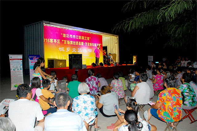 2016寒亭區(qū)“百場演出進(jìn)基層·文化快車通萬家”城鄉(xiāng)文藝巡演活動是由中共濰坊市寒亭區(qū)委宣傳部、寒亭區(qū)文化廣電新聞出版局、寒亭區(qū)廣播影視集團(tuán)主辦,濰坊市市立醫(yī)院獨(dú)家冠名,踐行 “兩學(xué)一做” 學(xué)習(xí)教育指導(dǎo)思想,倡導(dǎo)以“人文關(guān)懷、文化惠民”為主題的大型文藝下鄉(xiāng)巡演活動。本次巡演活動將在寒亭區(qū)范圍內(nèi)開展近百場,以中心社區(qū)和鄉(xiāng)村為演出地點(diǎn),以觀眾喜聞樂見的歌曲、舞蹈、相聲、小品和器樂演奏為主要內(nèi)容,通過此次文藝巡演宣傳活動,旨在進(jìn)一步激發(fā)全區(qū)干部群眾熱愛祖國,積極投身于工作的熱潮之中,引導(dǎo)干部群眾建立科學(xué)文明的生活方式,貫徹落實(shí)黨的文化政策,改善人民群眾的文化結(jié)構(gòu),加強(qiáng)城鄉(xiāng)精神文明建設(shè),加快新農(nóng)村建設(shè)步伐,推動城鄉(xiāng)文化事業(yè)的全面發(fā)展。