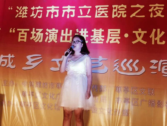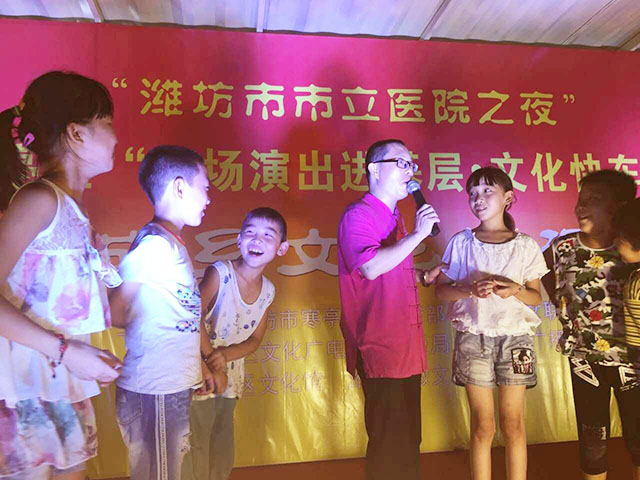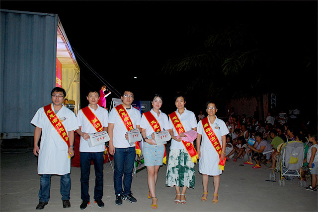 “濰坊市市立醫(yī)院之夜”—2016寒亭區(qū) ”百場演出進(jìn)基層·文化快車通萬家” 城鄉(xiāng)文藝巡演活動于8月9日晚在寒亭區(qū)朱里鎮(zhèn)東南堤村拉開帷幕,當(dāng)?shù)卮迕窆矌装偃爽F(xiàn)場觀看了本次演出。濰坊市市立醫(yī)院志愿者協(xié)會也派出志愿者醫(yī)護(hù)團(tuán)隊(duì)共同參與本次活動,現(xiàn)場提供健康科普咨詢服務(wù),在文藝活動下鄉(xiāng)的同時(shí),把健康和科普一起帶進(jìn)美麗鄉(xiāng)村。