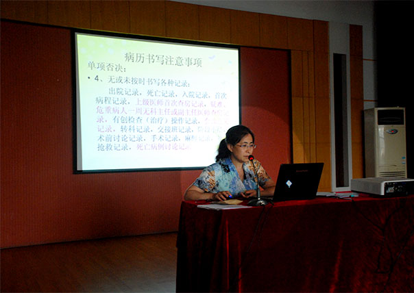 鄒晨容主任根據(jù)《病歷書寫基本規(guī)范》要求,結(jié)合相關(guān)法律、法規(guī)及條例,從病歷書寫注意事項(xiàng)、入院記錄、病程記錄、知情同意書等多方面,全方位進(jìn)行了深入淺出的詳細(xì)講解,使與會(huì)人員深刻領(lǐng)會(huì)到了病歷書寫的內(nèi)涵,認(rèn)識(shí)到了病歷規(guī)范書寫的意義和重要性。