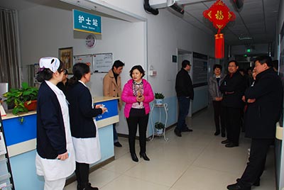 春節(jié)假期后2.14(大年初七)上班第一天,上午八點半濰坊市市立醫(yī)院黨委副書記、副院長鄭海妹、副院長李會全,院長助理梁宏宇等帶領(lǐng)職能科室負責(zé)人,來到醫(yī)院各科室,向堅守工作崗位的一線醫(yī)護員工送上新春的祝福。