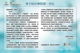 “中國(guó)醫(yī)師節(jié)” 致全院醫(yī)師的一封信 日期:2019-08-19 14:12:13 點(diǎn)擊:1883 好評(píng):46