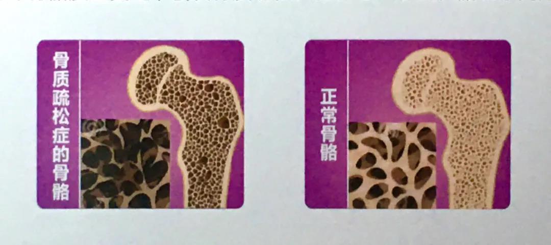 骨質(zhì)疏松癥是一種以骨量減少、骨微結(jié)構(gòu)破壞導致骨脆性增加、骨折風險增高為特征的代謝性疾病。骨質(zhì)疏松的骨骼在顯微鏡下呈蜂窩狀,孔隙比正常健康的骨骼更大,篩孔越多,骨骼就越脆弱,更易出現(xiàn)骨折。